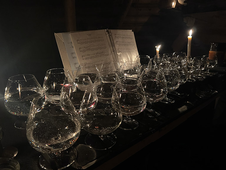 The Glass Harp - or Ghost Fiddle, as it was known in early America - is an instrument lost to folklore, legend, and superstition. It was called an angelic instrument, a cursed instrument, used by Doctor's to cure all manner of ills, and accused of causing insanity. Benjamin Franklin would see the instrument in Europe in the 1750’s and, using his creative genius, would use the glass harp as his prototype for the famed Glass Harmonica. Great composers such as Mozart, Donizetti, and Saint-Saens would all compose compositions for it before it fell out of popularity in the early 1800’s. Despite its strange and short history, the Glass Harp still amazes audiences with its ethereal tones and dulcet musicality. Virginia Scites has been playing this instrument for many years and presents it in such a way as to educate, amuse, and entertain.