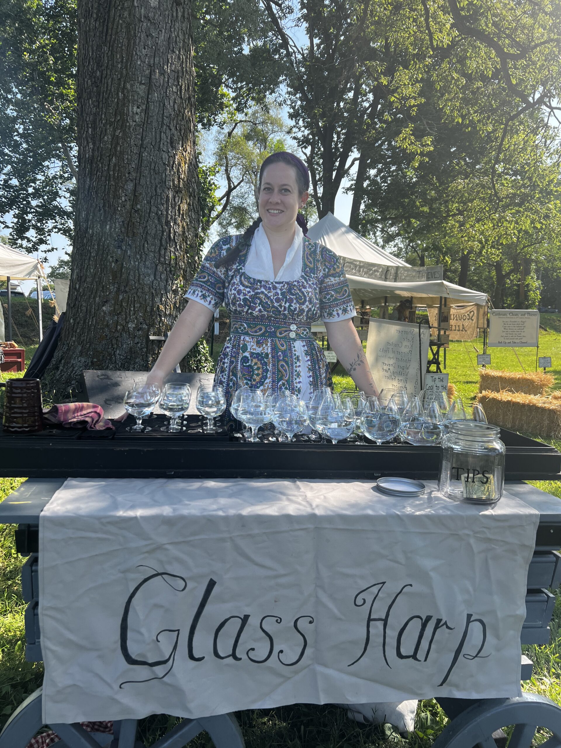 The Glass Harp - or Ghost Fiddle, as it was known in early America - is an instrument lost to folklore, legend, and superstition. It was called an angelic instrument, a cursed instrument, used by Doctor's to cure all manner of ills, and accused of causing insanity. Benjamin Franklin would see the instrument in Europe in the 1750’s and, using his creative genius, would use the glass harp as his prototype for the famed Glass Harmonica. Great composers such as Mozart, Donizetti, and Saint-Saens would all compose compositions for it before it fell out of popularity in the early 1800’s. Despite its strange and short history, the Glass Harp still amazes audiences with its ethereal tones and dulcet musicality. Virginia Scites has been playing this instrument for many years and presents it in such a way as to educate, amuse, and entertain.